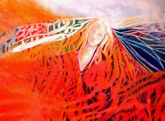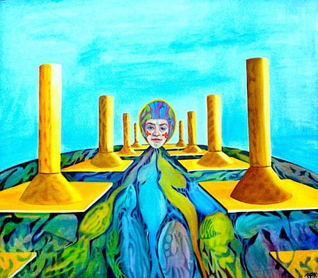 oil on canvas and wood. Then I began juxtaposing the patterns onto realistic forms --- although some abstracts did manage to creep in. And it was to become a recognizable signature among many of my